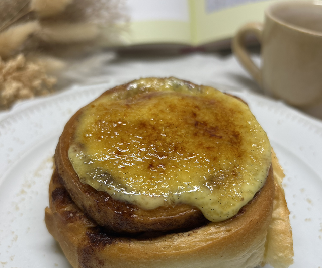 en topping une crème aux œufs et à la vanille de Madagascar brûlée au sucre roux façon crème brûlée