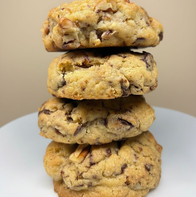 Cookie ultra généreux et gourmand avec ses noix de pécan torréfiées et ses grosses pépites de chocolat. Croustillant à l’extérieur et fondant à l’intérieur.